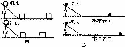 (1)设计甲实验的目的是研究钢球动能的大小与 的关系;设计乙实验的目的是研究运动的钢球速度减小的快慢与所受 的关系。