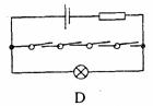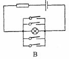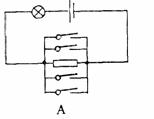 14.小轿车的仪表盘上,有一个显示汽车车门关闭状况的指示灯。只要四个车门中有一个没关闭(此时装在车门上的电路开关处于断开),指示灯就发光提醒。下面图四个电路中,能体现该装置工作原理的是
