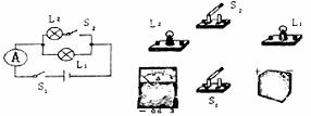 21.有两盏灯,两个开关,电源一个,导线若干。要求:断开开关S1、闭合S2,灯L1亮;断开S2,闭合S1,两盏灯都不亮,在方框内画出电路。