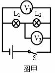 14.小明按如图甲所示的电路进行实验,当开关闭合后,电压表V1和V2的指针位置完全一样,如图乙所示,造成这一现象的原因是 ( )