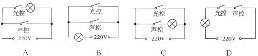 7.居民楼的楼道里,夜间只是偶尔有人经过,电灯总是亮着造成很大浪费。科研人员利用“光敏”材料制成“光控开关”--天黑时,自动闭合,天亮时,自动断开;利用“声敏”材料制成“声控开关”--当有人走动发出声音时,自动闭合,无人走动时自动断开。若将这两种开关配合使用,就可以使楼道灯变得“聪明”,则这种“聪明”的电路是