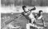 9.如下图所示是奥运会皮划艇静水比赛的情景,当运动员用船桨划水时,运动员手中使用的船桨属于_________(填“费力”、“省力”或“等臂”)杠杆,船桨向后划水,艇就向前运动,这一现象中包含的物理知识有(只要写出两点):(1)____________________;(2)___________________________。