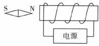 (3)(2分)电路通电后小磁针指向如下图所示,请在图中标出电磁铁的磁极及电源的“+”、“-”极。