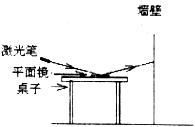 (1)如图所示,在桌子上固定一小块平面镜,让太阳光(或手电筒光、玩具激光发出的激光)照射在平面镜上经平面镜反射后,在墙上出现一个小光斑。
