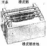 28.迷你实验室,材料:几根粗细不同的橡皮筋、一个纸盒、两根木。制作方法:如图所示。比较一下,使绷得较紧还是较松的橡皮筋音调高?是粗橡皮筋还是细橡皮筋音调高?请你用实验结果解释:“为什么胡琴、提琴等弦乐器能发出不同音调的声音?”