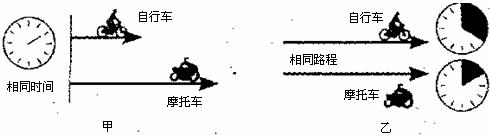 14.如图所示:甲、乙两图分别表示比较自行车和摩托车运动的两种方法,甲图表明:____乙图表明:______