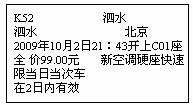 22.五一黄金周,小丽随爸爸、妈妈去北京旅游,如图是她用过的一张火车票。