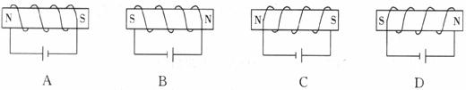 4.在下图所示的四个通电螺线管中,能正确地表示通电螺线管磁极极性的是