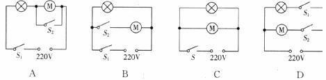 7.一般家庭的卫生间都要安装照明灯和换气扇,使用时,有时需要各自独立工作,有时需要它们同时工作,在如下图所示的电路中,你认为符合上述要求的是