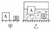 12.质量相同的两个实心正方体A和B,如下图(甲)所示,将它们放在水平地面上时,它们对地面产生的压力FA__________FB,产生的压强PA__________PB。当将它们放入水中后,分别静止在水中的位置如图(乙)所示,则它们受到水的浮力