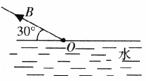 (2)(3分)下图中的OB是一束光线由空气射到水面后的反射光线,请你在图中画出入射光线,标出入射角的度数,并画出折射光线的大致方向。