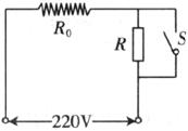 20.(7分)如下图是一条电热毯电路的示意图,R0是发热电阻丝,R是串联在电路中的电阻,S是控温开关。电热毯标牌上标有“220V 40W”字样。问(不考虑温度对电阻值的影响):