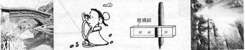 A.拱桥倒影 B.一叶障目,不见泰山 C.钢笔错位 D.树林间的光线