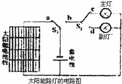 22.有一种太阳能路灯(电路如图),光控开关S1白天与触点a接触,太阳能电池板为蓄电池充电,晚上,与触点b接触,给路灯供电。时控开关S2晚上12点前与触点c接触,主灯发光,12点后与触点d接触,副灯发光。主灯为“24V