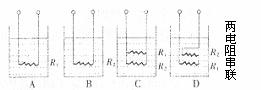 9.如图所示,已知电阻R1>R2,四个容器中水的质量相等,且初温相同,电路中电源电压相等,欲使四个容器中的水沸腾,需要的最少时间分别是tA、tB、tC、tD,则时间由少到多的排列顺序是
