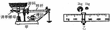 5.要测量物体的质量,实验室中常用___________。生活中有时也用如图甲所示的案秤,它们的工作原理相同。使用案秤时,应先将游码移至秤杆左端___________刻度线处,此时若秤杆右端上翘,应将调零螺母向___________(填“左”或“右”)调,使秤杆在水平位置平衡。某次测量,槽码和游码的位置如图乙所示,则被测物体的质量是___________ Kg。