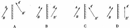 10.如图所示,AB是放在平面镜前的物体,A’B’表示物体在镜中所成的像,下列四图中正确的是![]()
