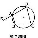 7.如图,四边形ABCD为圆内接四边形,E为DA延长线上一点,若∠C=50°,则∠BAE为( ).
