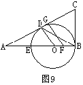 4.(17分)如图9,在△ABC中,∠ABC=90°,O是AB上一点,以O为圆心,OB为半径的圆与AB交于点E,与AC切于点D,AD=2,AE=1.