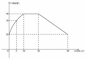 14.通过实验研究,专家们发现:初中学生听课的注意力指标数是随着老师讲课时间的变化而变化的,讲课开始时,学生的兴趣激增,中间有一段时间,学生的兴趣保持平稳的状态,随后开始分散. 学生注意力指标数y随时间x(分钟)变化的函数图象如图所示(y越大表示学生注意力越集中). 当