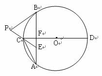 ⑵ 延长EC到点P,连结PB,若PB = PE,试判断PB与⊙O的位置关系,并说明理由。