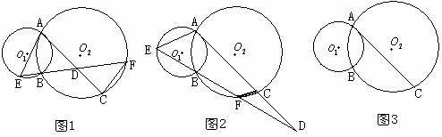 (2)若直线EF交弦AC的延长线于点时(如图2)。求证:DA·DF=DC·DE;