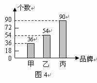 如图4是某文具店在2005年卖出供学生使用的甲、乙、丙三种品牌科学计算器个数的条形统计图,试解答下面问题: