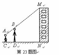 23.(本题满分10分)亮亮和颖颖住在同一幢住宅楼,两人准备用测量影子的方法测算其楼高,但恰逢阴天,于是两人商定改用下面方法:如图,亮亮蹲在地上,颖颖站在亮亮和楼之间,两人适当调整自己的位置,当楼的顶部