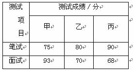 某单位欲从内部招聘管理人员一名,对甲、乙、丙三名候选人进行了笔试和面试两项测试,三人的测试成绩如下表所示: