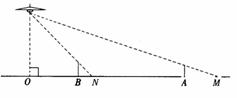 7.如图,路灯距地面 8 米,身高 1 . 6 米的小明从距离灯的底部(点O ) 20米的点A处,