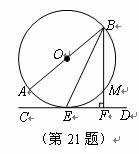 21. (本题满分8分)如图,AB为⊙O的直径,直线CD切⊙O于点E,BF⊥CD于点F,交⊙O于点M,连结BE.