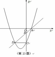23.(本题满分10分)如图,一次函数y=x+m图象过点A(1,0),交y轴于点B,C为y轴负半轴上一点,且BC=2OB,过A、C两点的抛物线交直线AB于点D,且CD∥x轴.