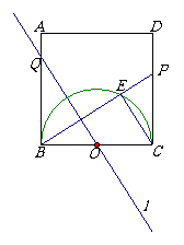 24. (本题满分10 分)已知正方形ABCD的边长为2,以BC边为直径作半圆O,P为DC上一动点(可与D重合但不与C重合),连结BP交半圆O于点E,过点O作直线l∥CE交AB(或AD)于点Q.