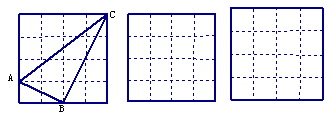 正方形网格中,小格的顶点叫做格点。小华按下列要求作图:①在正方形网格的三条不同的实线上各取一个格点,使其中任意两点不在同一条实线上;②连结三个格点,使之构成直角三角形。小华在左边的正方形网格中作出了Rt⊿ABC。请你按照同样的要求,在右边的两个正方形网格中各画出一个直角三角形,并使三个网格中的直角三角形互不全等。