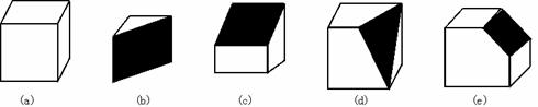 5.下列图形中,图(a)是正方体木块,把它切去一块,得到如图(b)(c)(d)(e)的木块.
