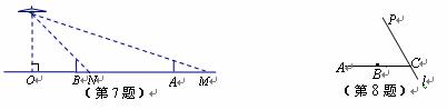 8. 如图,B是线段AC的中点,过点C的直线l与AC成60°的角,在直线l上取一点P,使得∠APB=30°,则满足条件的点P的个数是