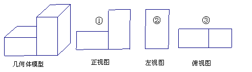 6. 某同学画出了下图中几何体模型的三种视图,每种视图分别标上代号(如图所示).