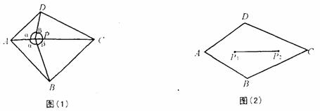 ( 3 )若四边形 ABCD 有两个半等角点P1 、P2(如图( 2 ) ) ,证明线段P1 P2上任一点也是它的半等角点 。