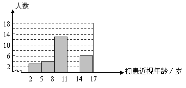 广州市某中学高一(6)班共54名学生,经调查其中40名学生患有不同程度的近视眼病,初患近视眼病的各年龄段频数分布表如下: