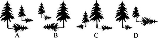 8. 下列四幅图形中, 表示两棵小树在同一时刻阳光下的影子的图形可能是