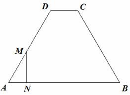 在梯形ABCD中,AB∥CD,AB=8cm,CD=2cm,AD=BC=6cm,M、N为同时从A点出发的两个动点,点M沿A→D→C→B的方向运动,速度为2cm/秒;点N沿A→B的方向运动,速度为1cm/秒.当M、N其中一点到达B点时,点M、N运动停止.设点M、N的运动时间为x秒,以点A、M、N为顶点的三角形的面积为y cm2.