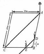 24、(本题6分)如图,在一个长40m、宽30m的长方形小操场上,王刚从A点出发,沿着A→B→C的路线以3m/s的速度跑向C地。当他出发4s后,张华有东西需要交给他,就从A地出发沿王刚走的路线追赶,当张华跑到距B地2m的D处时,他和王刚在阳光下的影子恰好重叠在同一条直线上。此时,A处一根电线杆在阳光下的影子也恰好落在对角线AC上。
