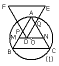 27、(本题9分)如图⑴,已知⊙O是等边△ABC的外接圆,过点O作MN∥BC分别交AB、AC于M、N,且MN=a。另一个与△ABC全等的等边△DEF的顶点D在MN上移动(不与点M、N重合),并始终保持EF∥BC,DF交AB于点P,DE交AC于点Q。