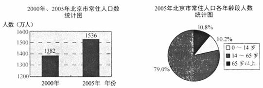 (1)从2000年到2005年北京市常住人口增加了多少万人?