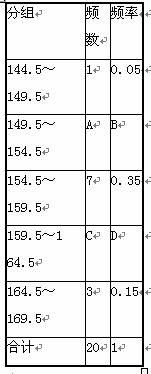 实验中学为了了解本校200名14周岁女生的身体发育状况,任意抽取了20名女生,对其身高进行测量,结果如下(数据均为整数,单位:cm)