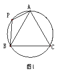 5.如图1,P为正三角形ABC外接圆上一点,则∠APB的度数是( )