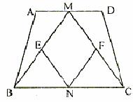 如图,在等腰梯形ABCD中,AD//BC,M、N分别为AD、BC的中点,E、F分别是BM、CM的中点。