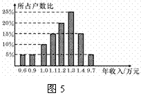 某同学进行社会调查,随机抽查了某个地区的20个家庭的年收入情况,并绘制了统计图5。请你根据统计图给出的信息填写。
