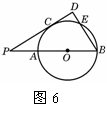 如图6,已知PAB是⊙O的割线,AB为⊙O的直径,PC为⊙O的切线,C为切点,BD⊥PC于点D,交⊙O于点E,PA=OA=OB=1。