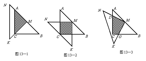 (3)如果将△MNK绕M旋转到不同于图13-1和图13-2的图形,如图13-3,请你猜想此时重叠部分的面积为 。